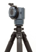 ・三脚は軽量なアルミ製 4段タイプで、エレベーション機能も装備しています。