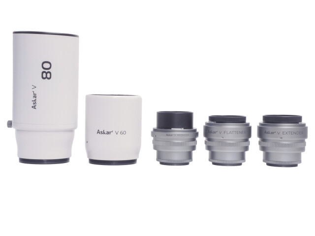 - ●同梱されているV用に開発されたVレデューサー、Vフラットナー、Vエクステンダーを組み替えることで、60mm対物レンズでは270mmF4.5、360mmF6.0、446mmF7.43、80mm対物レンズでは384mmF4.8、495mmF6.18、600mmF7.5の合計6通りの焦点距離での撮影が可能です。