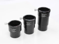 CNC切削加工+ブラックアノダイズによって堅牢に仕上げられた2インチの延長筒です。アイピースアダプターにはコレットチャックによる回転締付式を採用しており、アイピースのバレルを周囲から均等に締め込み、しっかりした固定ができると共に、確実なセンタリング状態が常に維持できます。更に回転締付リングには補助ストッパーネジ(M4-8mmA / 標準付属品)が取付可能なため、回転締付用のハンドルとしての利便性に加え、特に重量のあるアイピースやカメラを装着した際、二重ロックすることにより万一の脱落予防に非常に有効です。2インチバレルには着脱時に引っかかりの無いストレートタイプを採用しており、丁寧な内面施条処理により反射迷光が生じにくく、コントラストの低下を防ぎます。また、バレルの先端には48mmフィルターを取り付けることができます。延長高35mm・50mm・80mmの3種類から必要に応じてお選びください。