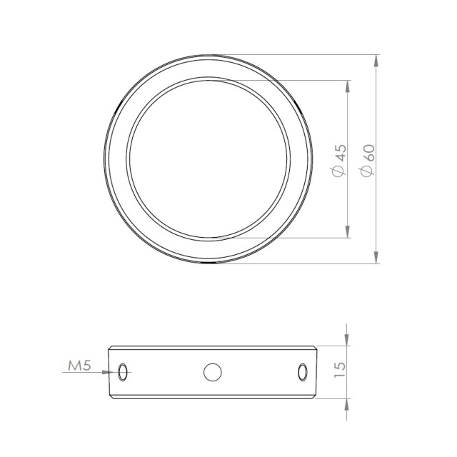 ビクセンの現行赤道儀(SXD2など、底面の出っ張り径45mm)を旧型ビクセン三脚(上面ヘコミ径60mm)に載せるため、隙間を埋めるアダプターです。