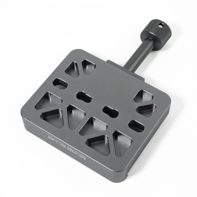 ロックノブは搭載するプレートや鏡筒などに干渉しないようにアリミゾ上面より若干低くなっています。また、ノブのシャフト部も長くなっていて、搭載物への干渉やノブを回しやすいなどの配慮がなされています。