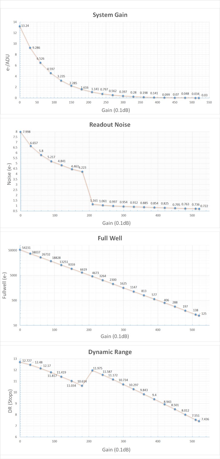 - Player Oneのプラネタリーカメラには独自のHCGモードが装備されています。HCGモードは、読み出しノイズを大幅に低減し、低ゲインと同じ高ダイナミックレンジを維持できます。カメラのゲイン設定が80以上になると自動的にオンになります。