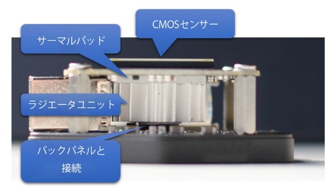 - 撮影時にセンサーから発生する熱を効率的に外部に逃す機構を本体内部に備えています。センサー自体が発生する熱を外部へ逃がすことで、センサーに発生するノイズ(ダークノイズ)を抑制する効果が期待できます。