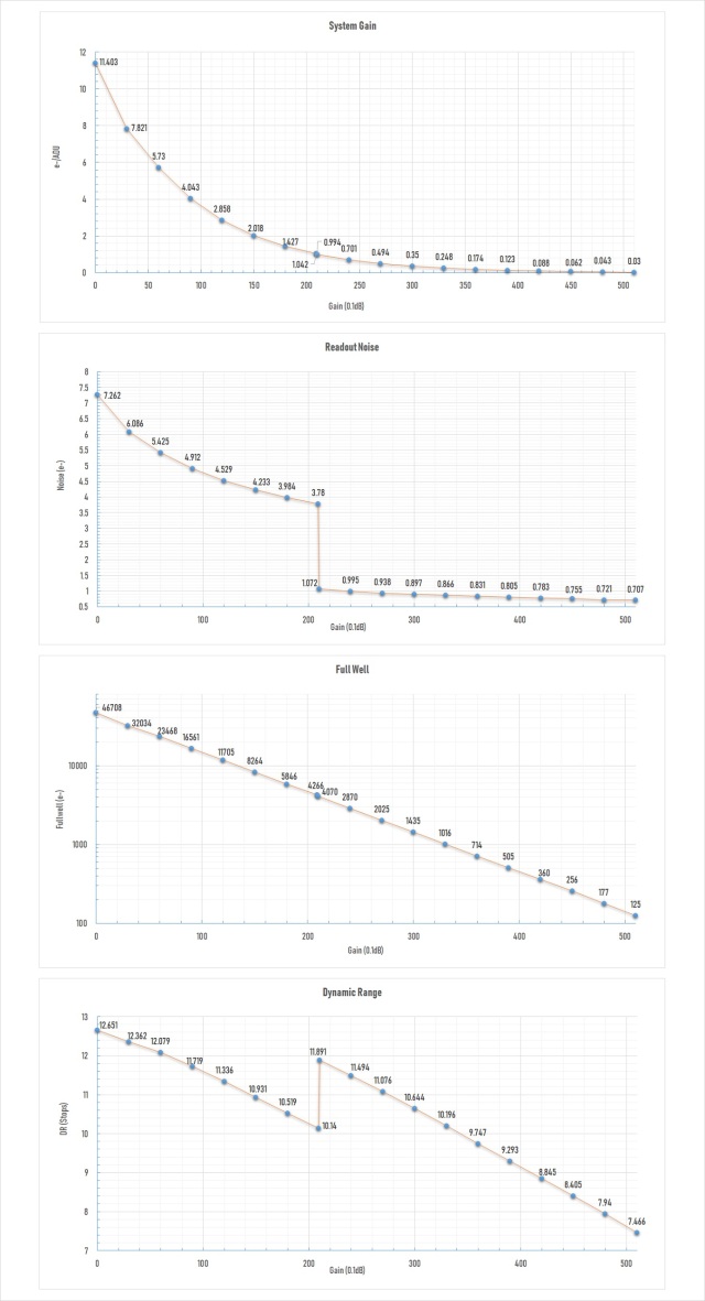 Player One のカメラには独自の HCG モードが装備されています。HCG モードは、ハイゲイン設定時に読み出しノイズを大幅に低減し、低ゲインと同じ高ダイナミックレンジを維持できます。