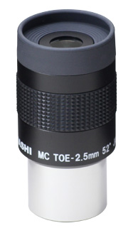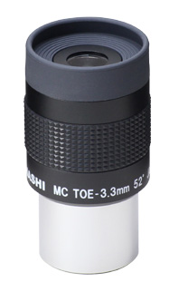 TOEはタカハシの新設計短焦点アイピースシリーズです。前群のスマイスレンズと後群のマスターレンズを総合して最適化を図るタカハシ独自の4群6枚のレンズ構成で、球面収差、色収差、像面湾曲、非点収差、歪曲収差、倍率色収差などの諸収差が極小になるように設計されています。