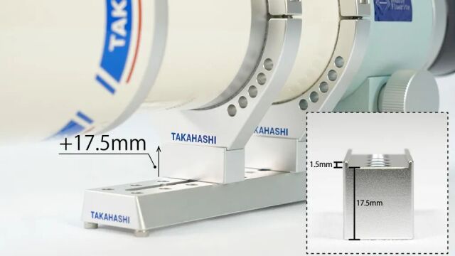鏡筒バンド95WB、鏡筒バンド80WBに適合する厚み17.5mmのスペーサーです。合焦ハンドル部にオートフォーカサーを取り付ける場合など、アリガタや架台への干渉を軽減できます。必要に応じてお求めください。
