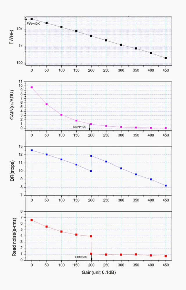 ゲインが200に達すると、HCGモードが自動的にオンになり、カメラが低ゲインの場合と同じ高ダイナミックレンジを維持します。